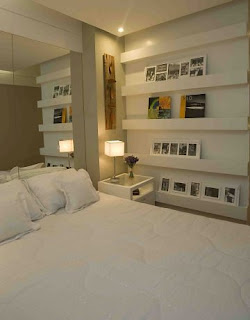 Para o quarto do casal, também temos outros pontos a pensar. Os nichos são ótimos para enfeites, livros e fotos, ou simplesmente para decoração com objetos abstratos e coloridos.